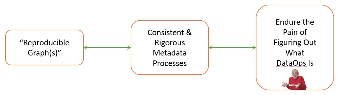 Knowledge graphs need context and focus because they are, or should be, rich representations of complex human systems (even in the most simple case). This situation implies that a consistent and rigorous strata of metadata is required between the data assets to be used and the knowledge graph to implemented: metadata and it processes are the critical aspect to the challenge of reproducibility and consistency. This realization unfortunately incurs a lot of very heavy, timely, and costly implications towards how the data systems that support knowledge graphs must adapt to implement and sustain this level of rigorous functionality. At this point, I came across a few articles on data operations (DataOps)... and I would never be the same again.