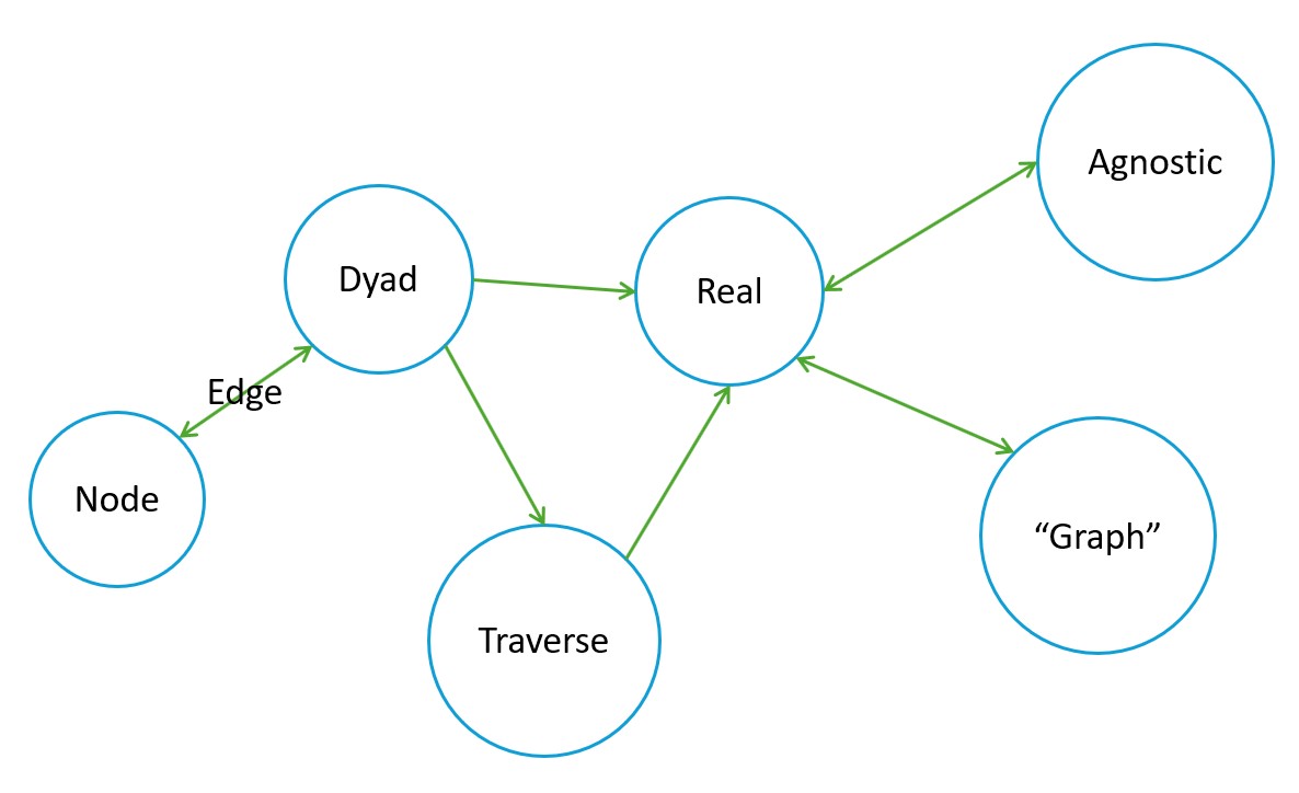 Borrowing from a dear friend and colleague, a knowledge graph is a platform agnostic data structure that constitutes a network of relationships. These relationships, represented using dyads, represent things that exist in the real world (e.g., there is data produced via a methodology that demonstrates that the thing can be observed). The dyad, a node-edge-node (or triple) data structure is the fundamental unit of analysis for a network of relationships that share either a node (most common) or edge (more bespoke e.g., hypergraphs). The goal of linking these dyads is to traverse the graph much like you would follow a trail. In this case, the trail is a logical, human-readable expression regarding the knowledge graphs nodes and edges to find real world instances that reflect that query pattern.
